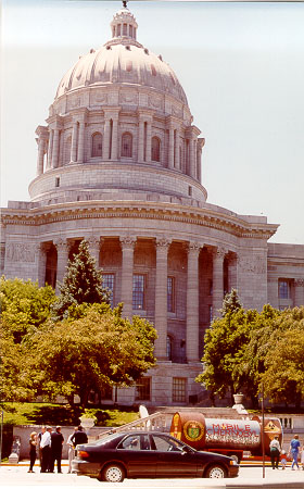 "Jeff City" and One shows kids touring the Capitol, which is literally a stone's throw up a hill from the Union Pacific railway which would haul many thousands of high level waste casks across Missouri. |