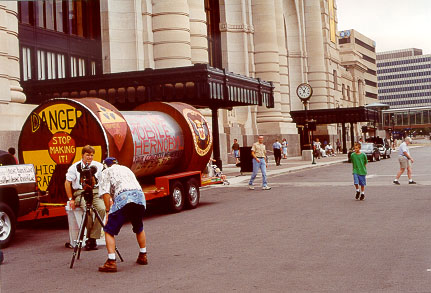 shows me being interviewed by a Kansas City Star newspaper reporter in front of the WWI monument in KC, again at Union Station. (just a different orientation) |