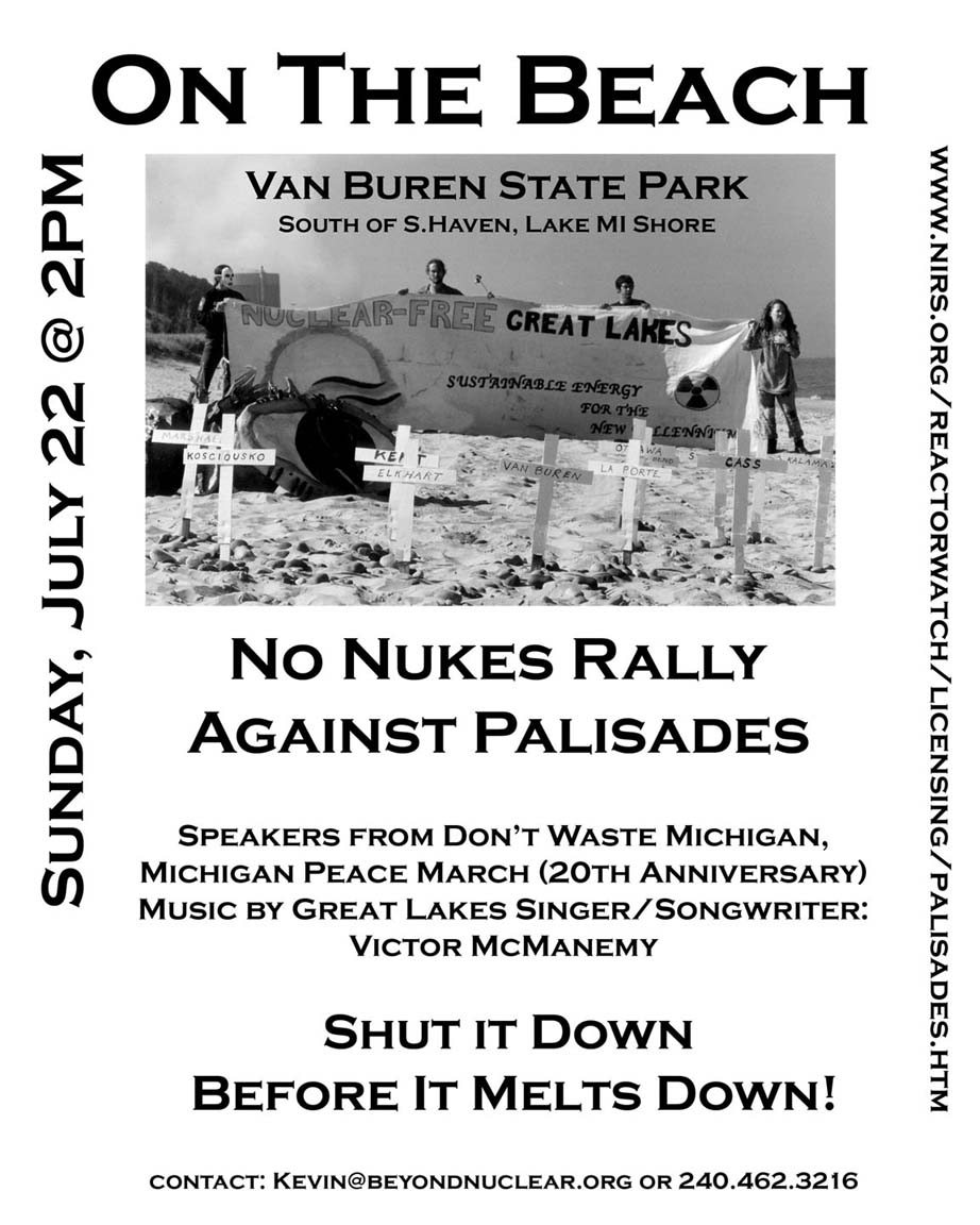 August 8, 2005: A growing coalition, including NIRS and two dozen grassroots Great Lakes environmental groups, issues a statement opposing the 20 year license extension at Palisades (coalition list updated Jan. 21, 2006).